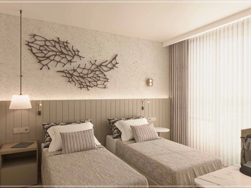 Denize sıfır konumlanmış olan tesisin özel plajı bulunmaktadır.