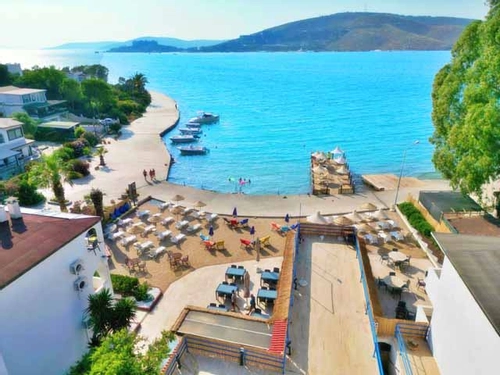 Denize sıfır konumda bulunan tesisin kendine ait plajı ve iskelesi bulunmaktadır.