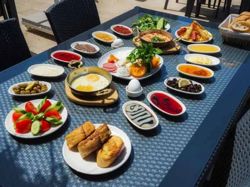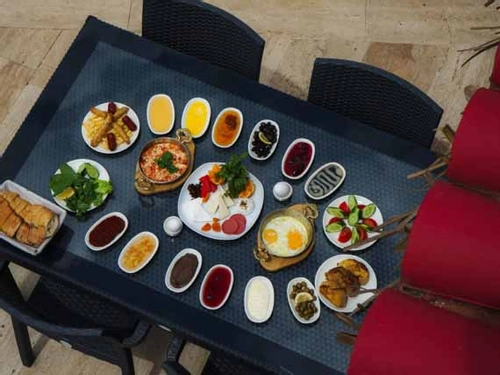 Kahvaltı (08:00 - 10:00 arasında)(Serpme kahvaltı olarak sunulur.)(Yoğunluk durumuna göre açık büfe olarak da servis edilebilir.)